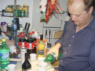Our Christmas Chef (Mr. Stephen Tingay, Sales Assistant), mixing the advocaat to make snowballs.
